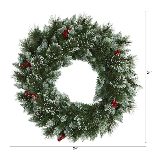 Light up seasonal accents with this artificial wreath designed from a collection of pine foliage, accented throughout with faux pinecones, all frosted with a hint of faux snow. Pre-strung with clear LED lights, this decorative wreath makes for an inviting accent all season long.