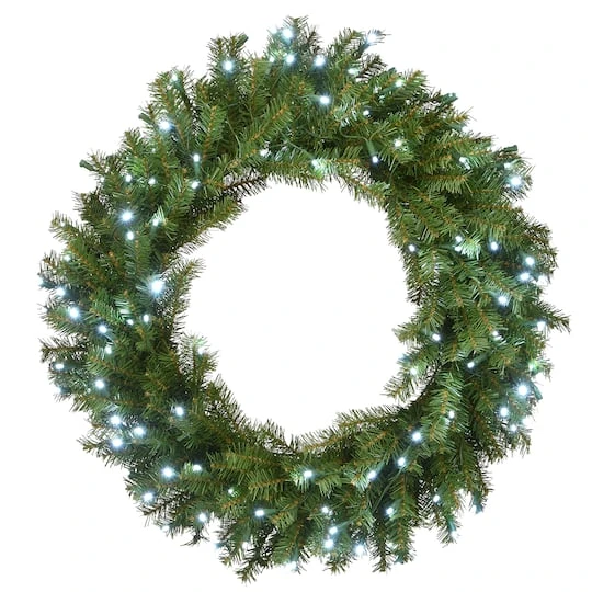 The Norwood Fir is a thick, full wreath that features Memory-Shape construction where branch tips are pre-shaped, making it ready for display right out of the box. It is lit with 150 cool white LED lights that are energy-efficient and long lasting. This wreath can be hung on doors, walls and windows in indoor or covered outdoor locations.
