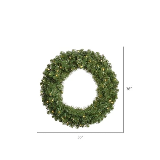 Add some holiday spirit to your front door or mantel with this beautiful wreath. This wreath features lush green PVC tips and comes pre-lit with warm white LED wide angle lights that run on 120V AC. It can be used just as it is or customized with your favorite ornaments, ribbons, or Holiday picks. The wreath measures 36″ across the diameter from the end of one tip to another. Comes in two sections, assembly is required, and the hardware is included. Incorporate this beautiful wreath into your home or office. Place it on your front door or mantel. This decorative wreath is maintenance free and will suit any décor.