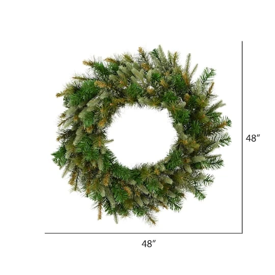 This cashmere tip features a mixed blend of realistic PE, and traditional PVC needles to create a natural yet full look. Add some holiday spirit to your front door or mantel with this cashmere wreath. This wreath measures 48″ across the diameter from the end of one tip to another. Incorporate this beautiful wreath into your home or office. Place it on your front door or mantel. This large wreath is perfect for adding a touch of elegance to your home during the holiday season. Perfect for any holiday event or gathering. Keep this wreath for years to come with its timeless and durable design. The rich green needles and intricate texture replicate the look and feel of fresh pine, creating an authentic and natural appearance that will impress your guests. This durable wreath is maintenance free and will suit any décor.