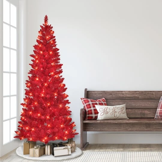 Give your holiday décor an exquisite appeal with this Pre-lit Flocked Red Christmas Tree. Guaranteed to be an immediate eye-catcher, this artificial Christmas tree is made with a distinctly colorful design that breaks free from the traditional styles. It includes 200 UL clear LED lights that illuminate your home with a festive glow while also saving you the time and trouble of stringing bulbs onto the tree. Assembly is easy – just connect the tree’s components, adjust the branches, and plug in the lights for a show-stopping holiday centerpiece. A sturdy steel stand keeps the tree and all its decorations stable, preventing the risk of tipping over. Made with strong and durable steel components and 475 branch tips, this item is built to last. Flame retardant and hypoallergenic materials make it a safer choice when compared to real trees. This product is backed by a 5-year warranty on the tree and a 2-year warranty on lights for years of quality use.