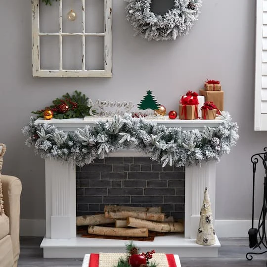 Spotlight any bare area of your home in need of some color and holiday cheer with this flocked artificial garland. Flocked to recreate a snow setting, this faux garland is accented with 35 warm white LED lights. Artificial garlands are manufactured using synthetic materials, such as polyester material or plastic, and are well designed and constructed to be life-like in appearance.