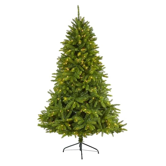 Evoke hints of a traditional Christmas setting with the help of this natural looking artificial Christmas tree. Intricately designed to showcase an all-natural look in appearance, its robust silhouette is made up of easy-to-bend branch tips, perfect for showcasing all your favorite holiday ornaments. Arriving pre-strung with clear LED lights to eliminate unsightly tangles and carefully stabilized on a metal stand, this full-figured 6ft. artificial Christmas tree will undoubtedly be a great addition to holiday décor, year after year.