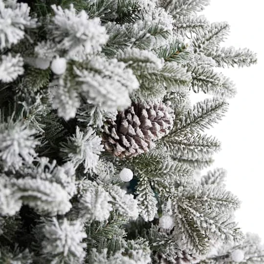 Transform your home into an enchanting winter wonderland with this flocked artificial Christmas tree. If you dream of a white Christmas, these artificial trees are designed to mimic the texture and foliage of real trees with their upward sloping branches that can easily house ornaments. Adorned with pinecones throughout and pre-strung with 350 LED lights for a warm, candle-like glow, all that’s missing are your ornaments. Standing at 7.5 ft. from a metal stand, this flocked tree complements spaces that need some Christmas love. Make your white Christmas dreams come true today.