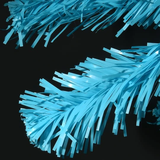This tree with its uncommon color brings a whole new dimension to your seasonal decorating scheme. It features unique matte-finish light blue color branch tips that really set it apart from more traditional holiday tree decorations. This tree is a great choice to display in corners or areas with limited floor space. Wrapped branch construction allows for fast and simple shaping. A white folding metal tree stand is included.