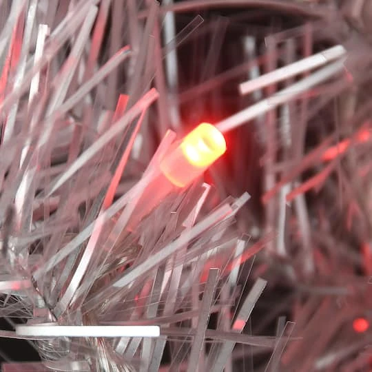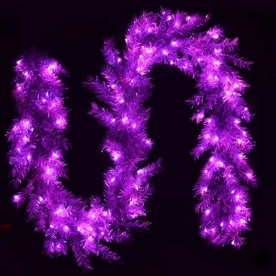 Bring a whole new dimension to your holiday decorating with this evergreen garland featuring sparkling metallic branch tips. This glittering decoration is strung with 100 Light Parade LED bulbs that are operated with a handheld remote control. This lighting system offers multiple functions, including steady, fading, and flashing, as well as light colors that include white, yellow, blue, red and multi. This unique garland can be displayed over doors, windows, fireplace mantels, fence, or stairway railings in indoor or covered outdoor locations.
