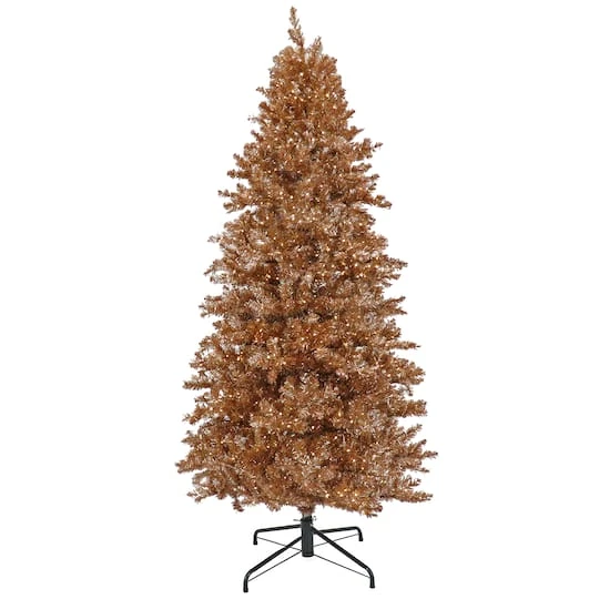 Bring a whole new dimension to your holiday decorating with this evergreen tree featuring sparkling metallic branch tips. This thick, full-bodied tree is strung with 2,000 warm white LED Infinity Lights®, which are micro-LED bulbs built right into the light strings. This design allows for an increased volume of lights and cleaner overall look that provides a distinctly elegant result. Four-section, hinged branch construction makes assembly quick and easy. Sturdy folding metal tree stand is and lights ON/OFF footswitch included.