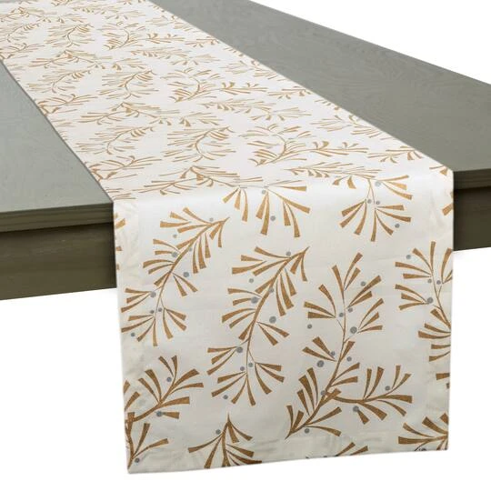 Runners provide a great place to set down platters to prevent spills and scratches on your tabletop while adding style and flair. This holly leaves runner is appropriate for a table that can seat 8-10 people. Place lengthwise on console tables, dining tables, coffee tables or entryway tables to instantly update up any room.