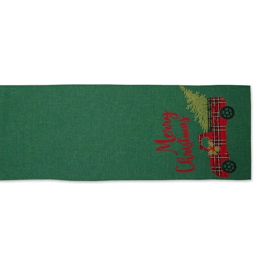 - Green with embroidered truck and Merry Christmas lettering