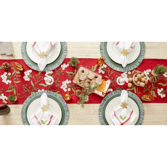 This beautiful embroidered table runner featuring delicate mistletoe can be used all through the holiday season. Dress it up or down to create the perfect look for each place setting at your table. Don’t forget to pair with the matching cloth napkins, napkin rings, placemats and tablecloths from DII to complete the look for your next holiday meal.