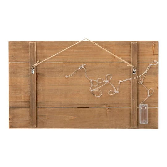 A delightful and festive addition to your holiday decorating, this wooden décor features an old-fashioned Santa surrounded by snow covered evergreens and a house. It reads “Merry Christmas”, while 10 snowflakes sparkle and shine warm white LED lights.
