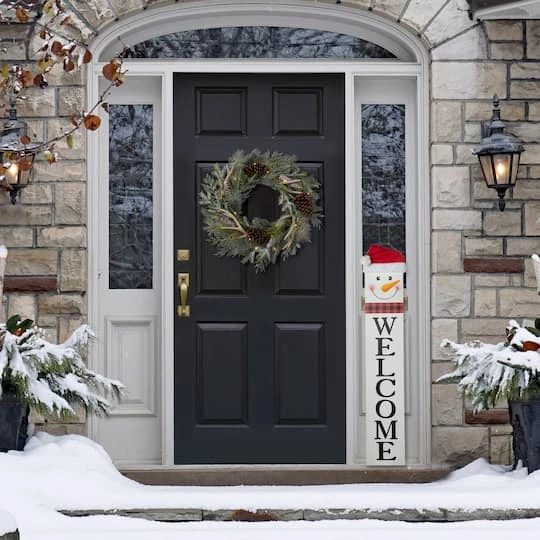 Show your wishes and happiness with this double-sided porch sign! Stylishly design with classical red and black, it brings your a traditional and classic feel to your holiday home. It will make a great entryway decoration or housewarming gift to welcome the holiday season.