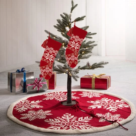 Decorate your home for Christmas with these matching stockings and tree skirt. Hang the stockings on your Christmas tree or fireplace mantel and use the tree skirt under your tree for a pretty addition to your décor.