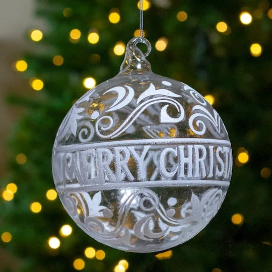 Are you looking for an elegant take on a Christmas classic? This ornament features a bright glass ball with white text and design. It would look amazing on your tree and would look stunning with any décor. This ornament is so lovely and it would also make a great gift!
