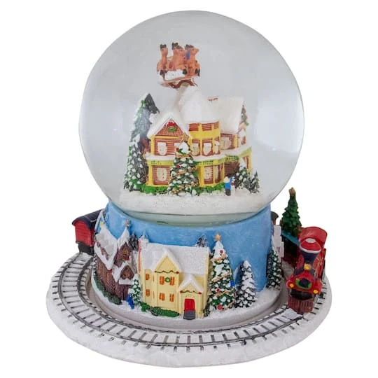 Here comes Santa Claus! Bring the excitement of Christmas Eve to your house by adding this adorable musical snowglobe to your décor. A rotating base with a train catches the eye as you watch Santa Claus and his reindeer fly around the house.
