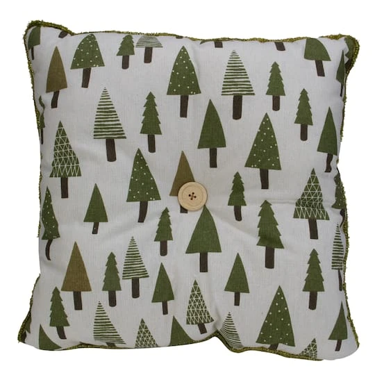 Add this outdoor-themed throw pillow to your room’s décor. This throw pillow has a shiny green border and features forest green trees with polka dots, stripes, triangles, solid designs, and a summary in the center. It will make a perfect addition to your bed or sofa. This pillow also makes the perfect gift for the upcoming holiday season.