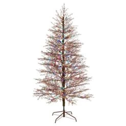7ft. Pre-Lit Frosted Berry Twig Artificial Christmas Tree, Multicolor Gum Ball LED Lights